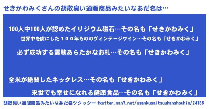 | 伝説のあだ名 | 『伝説のスナイパーせきかわみく』 |