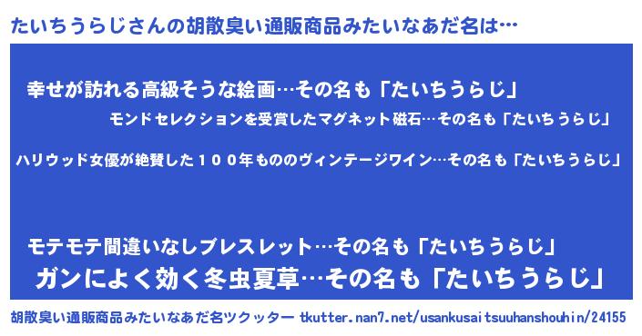 | 意味不明あだ名 | 『住所不定無職たいちうらじ(13歳)』 |