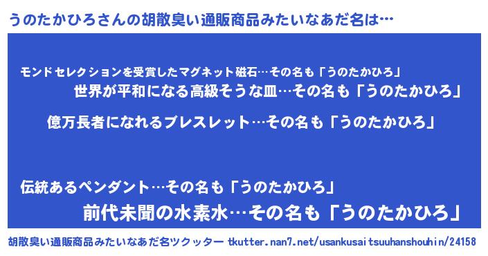 | ヘコむあだ名 | 『うのにー』『うのたかひろ(笑)』 |