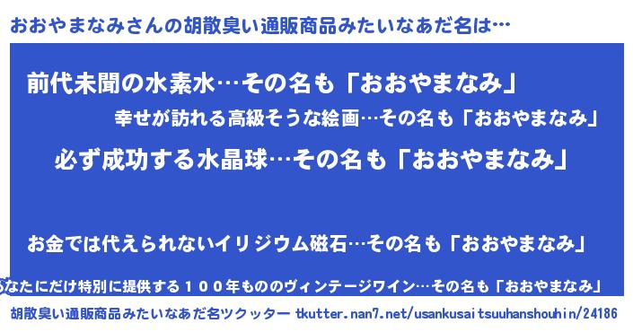 | 欧米人風あだ名 | 『マイケルおおやまなみ』 |