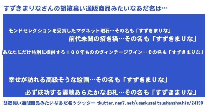 | ヘコむあだ名 | 『すずふぇ~』『すずきまりな(小並感)』 |