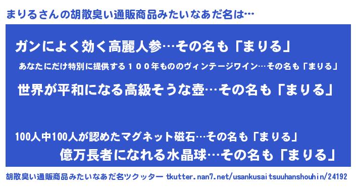 | 意味不明あだ名 | 『たけのこ科まりる属』『自称まりる』 |