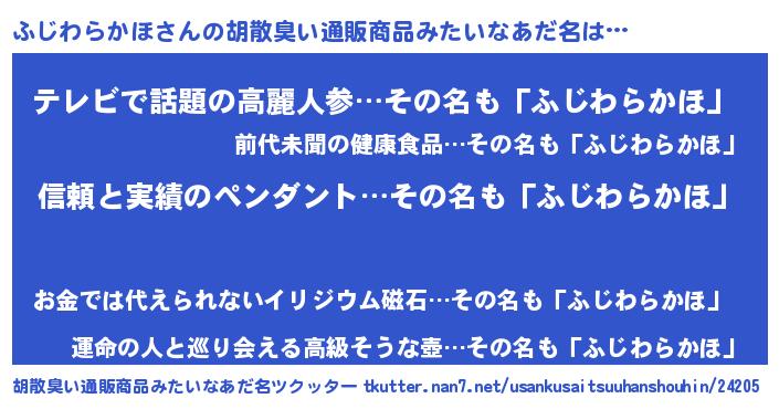 | 意味不明あだ名 | 『とにかく怪しいふじわらかほ』 |