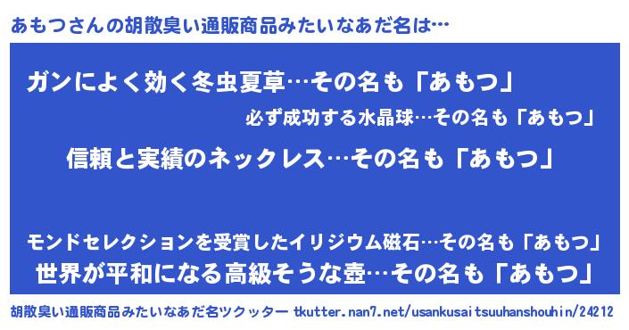 | 女子向けラノベタイトル風あだ名 | 『あもつは平凡を望む』『闇のあもつ』 |