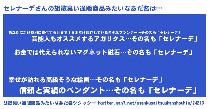 セレナーデさんの胡散臭い通販商品みたいなあだ名をツクッター!