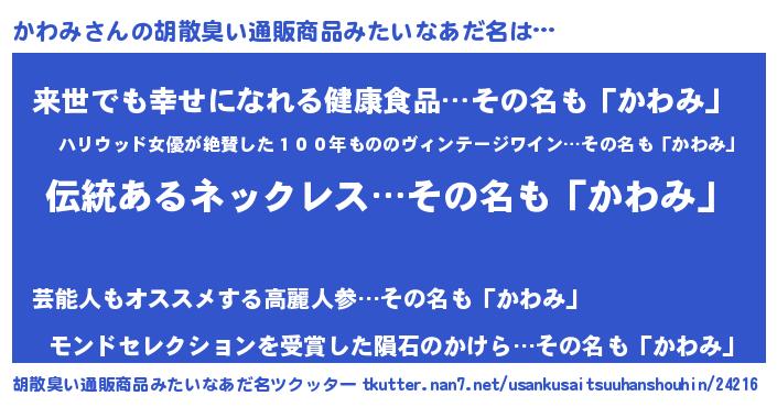 | ヘコむあだ名 | 『かわっ子』『かわみ(笑)』 |