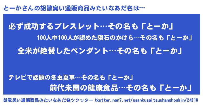 | 意味不明あだ名 | 『とにかく怪しいとーか』 |