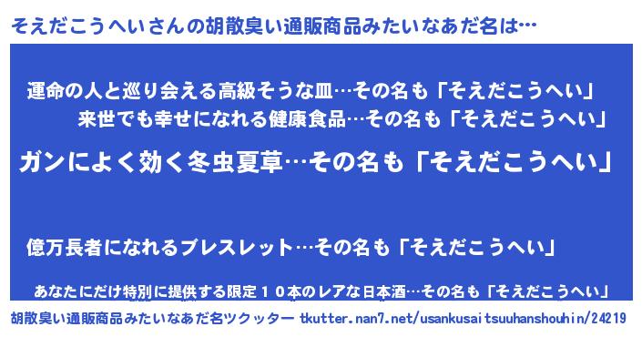 | 肩書あだ名 | 『そえだこうへい総統』 |