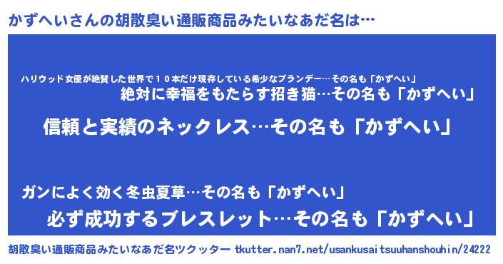 | 意味不明あだ名 | 『とにかく怪しいかずへい』 |