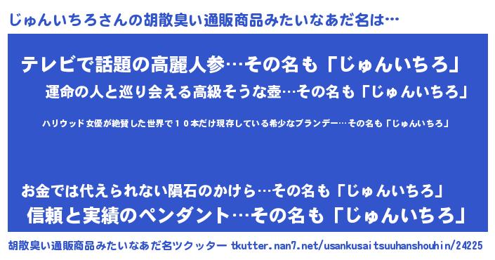 | 意味不明あだ名 | 『住所不定無職じゅんいちろ(77歳)』 |