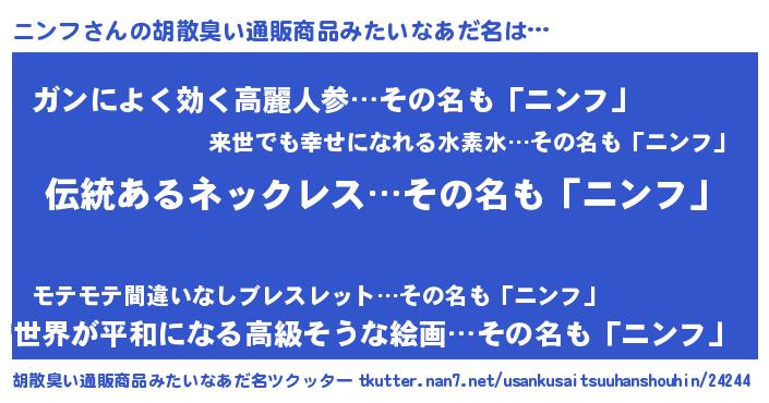 | ポケモン風あだ名 | 『ヒニンフ』『ニンセウス』 |