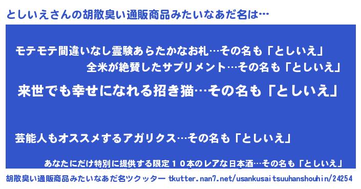 | 意味不明あだ名 | 『永久保存としいえ』『ペロリンとしいえ』 |