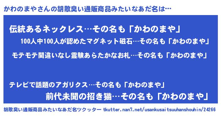 | 肩書あだ名 | 『かわのまや機長』『かわのまや社長』 |