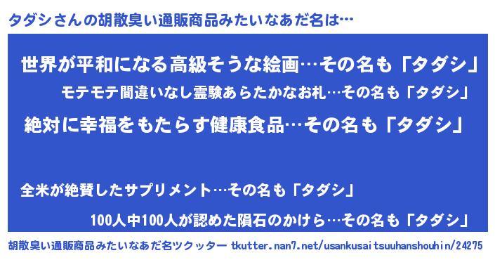 | 男性向けラノベタイトル風あだ名 | 『タダシスレイヤー』 |