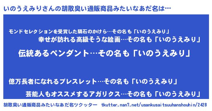 | 意味不明あだ名 | 『とにかく怪しいいのうえみり』 |