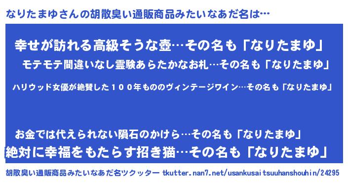 | ヒーロー風カッコイイあだ名 | 『仮面ナリダー』『ネオナリタマユ』 |