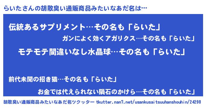 | ヘコむあだ名 | 『らいふぇ~』『らいお』『つくし』 |