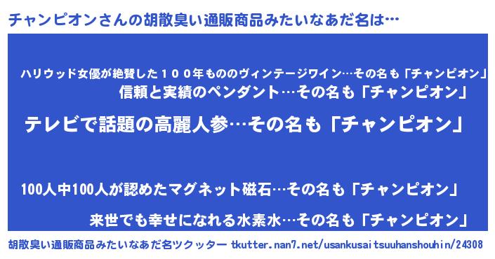 | ヘコむあだ名 | 『チャンピオン(小並感)』『チャを』 |