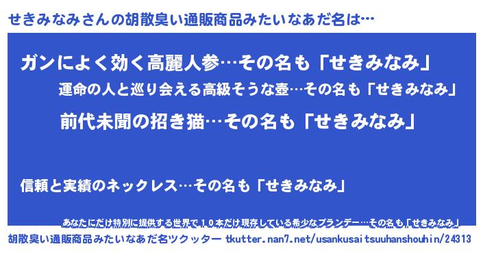 | 意味不明あだ名 | 『永久保存せきみなみ』『自称せきみなみ』 |