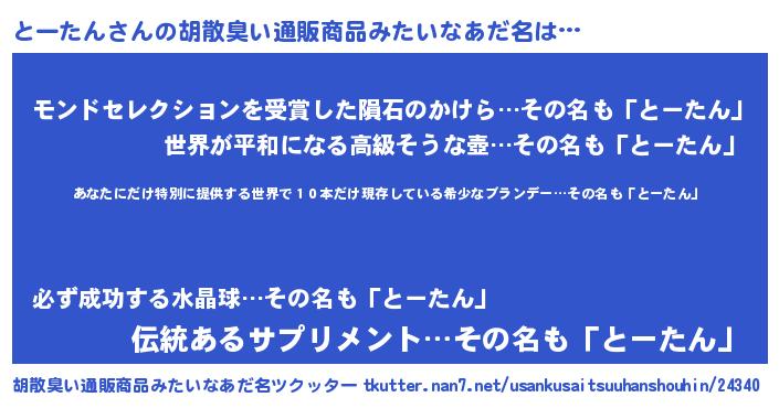 | 意味不明あだ名 | 『住所不定無職とーたん(77歳)』 |