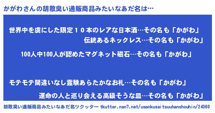| ヒーロー風カッコイイあだ名 | 『正義の使者かがわ』『仮面カガダー』 |