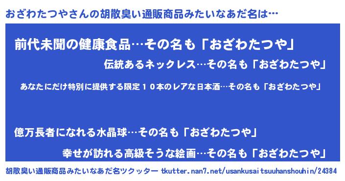 | ヘコむあだ名 | 『おざわたつや(笑)』『酢こんぶ』 |