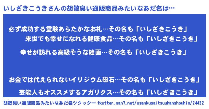 | 肩書あだ名 | 『いしざきこうき総理大臣』 |
