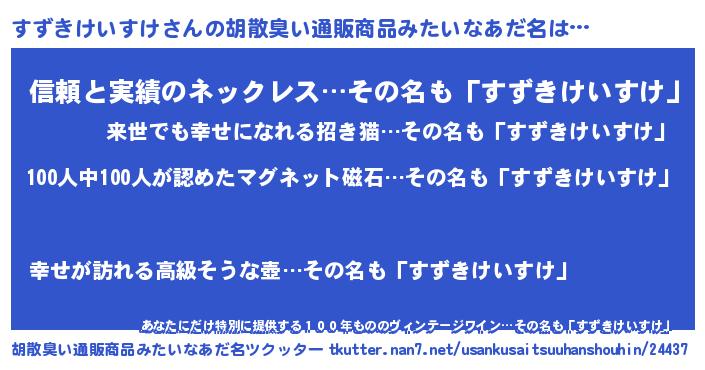 | ヘコむあだ名 | 『すず太郎』『すずきけいすけ(笑)』 |