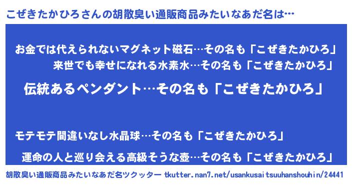 | 意味不明あだ名 | 『とにかく怪しいこぜきたかひろ』 |