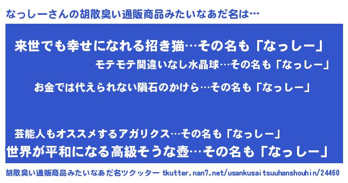 | ヘコむあだ名 | 『なっしー(震え声)』『豆乳』 |