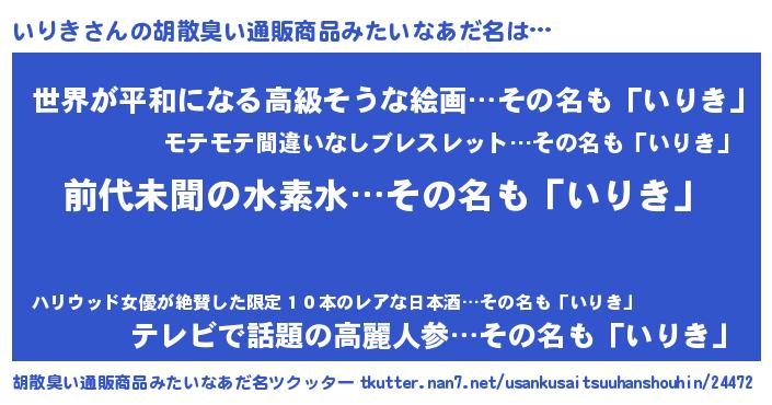 | 意味不明あだ名 | 『永久保存いりき』『なめこ科いりき属』 |