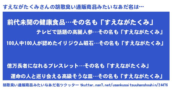 | 意味不明あだ名 | 『眠気覚ましガムすえながたくみ味』 |