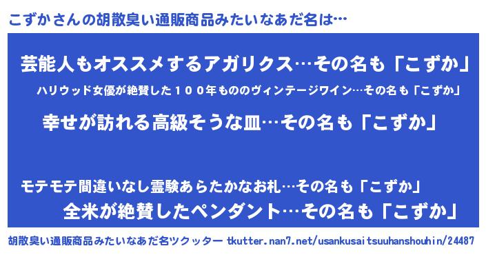 | 意味不明あだ名 | 『こずかフォーエバー』『自称こずか』 |