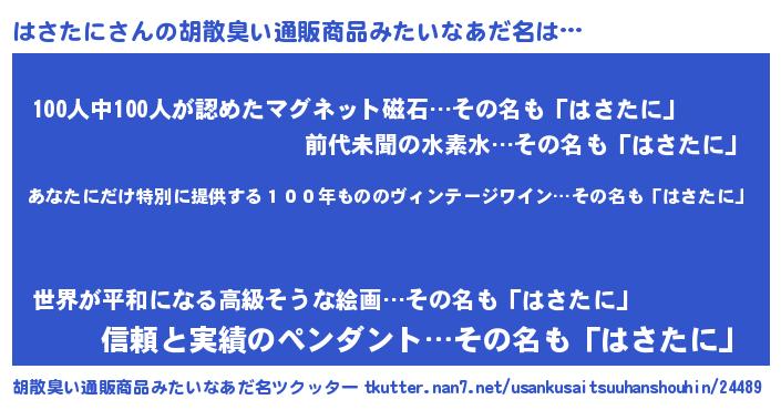 | 意味不明あだ名 | 『住所不定無職はさたに(12歳)』 |