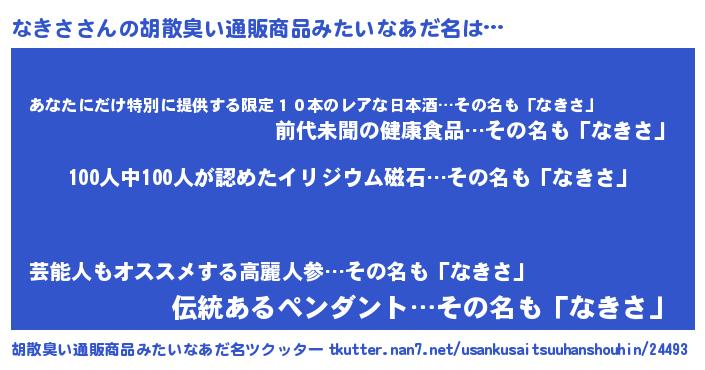 | ヘコむあだ名 | 『なきっ子』『なきさ(笑)』『豆乳』 |