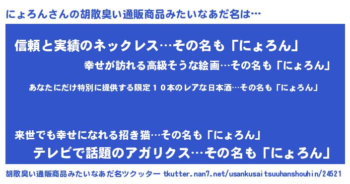 | 男性向けラノベタイトル風あだ名 | 『にょろんに滅ぼされるだけの簡単なお仕事です』 |