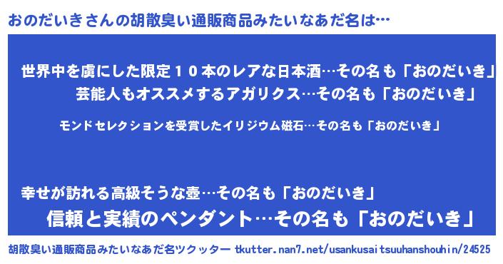 | 欧米人風あだ名 | 『ダニエルおのだいき』 |