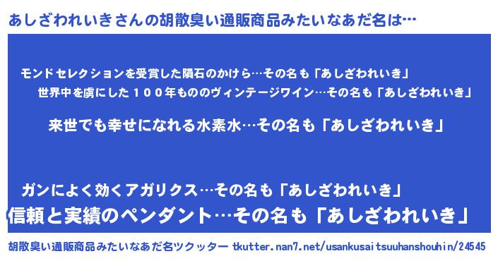 | 欧米人風あだ名 | 『アンジェラ・あしざわれいき』 |