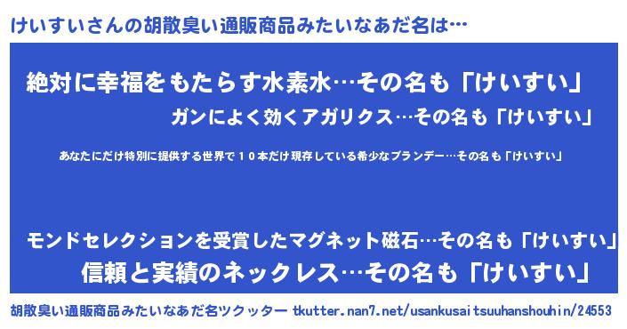 | ヘコむあだ名 | 『けいすい(苦笑)』『けいぷりん』 |