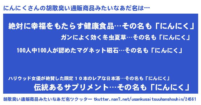 | 欧米人風あだ名 | 『ダニエルにんにく』『ウサインにんにく』 |