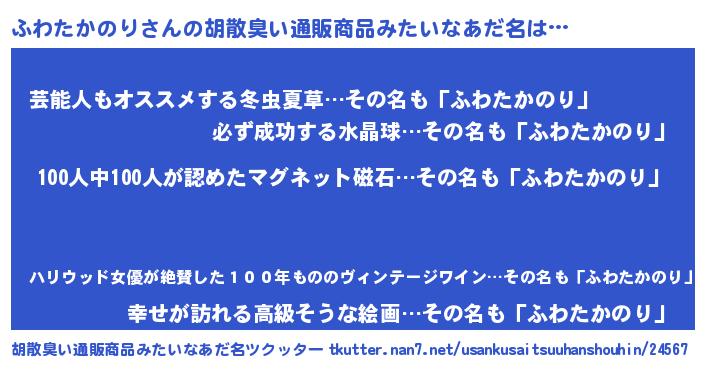 | 欧米人風あだ名 | 『アンジェラ・ふわたかのり』 |