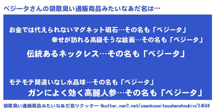 | 意味不明あだ名 | 『とにかく怪しいベジータ』 |