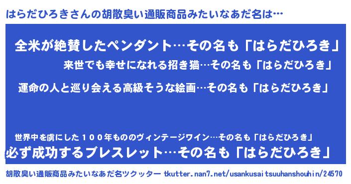 | 欧米人風あだ名 | 『はらだひろきクリステル』 |