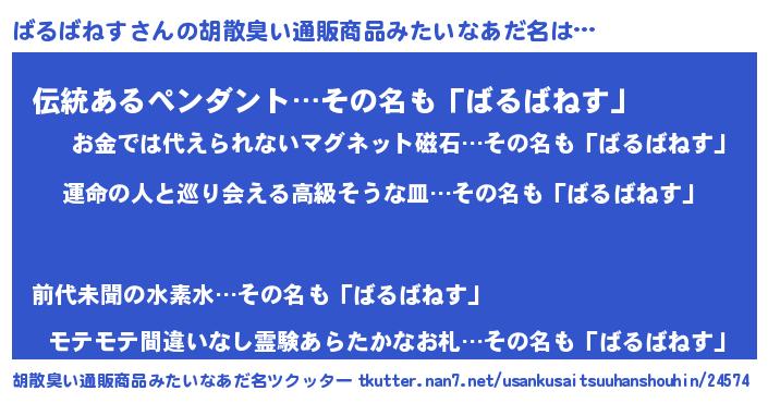 | 欧米人風あだ名 | 『ばるばねすクリステル』 |