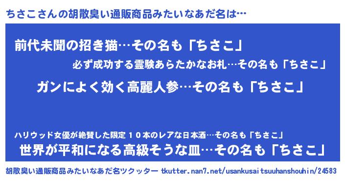 | 意味不明あだ名 | 『自称ちさこ』『永久保存ちさこ』 |