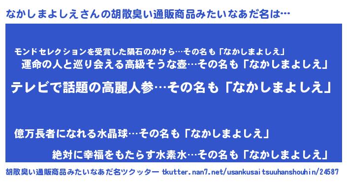 | ヘコむあだ名 | 『なかしまよしえ(笑)』『酢こんぶ』 |