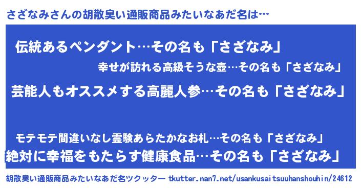 | 意味不明あだ名 | 『自称さざなみ』『永久保存さざなみ』 |
