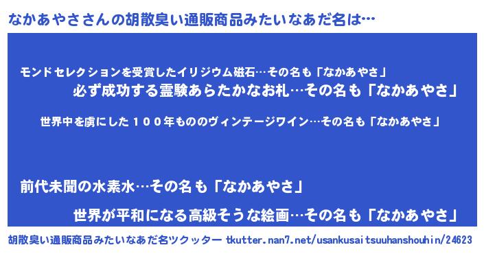 意味不明あだ名 | 『住所不定無職なかあやさ(6歳)』 |