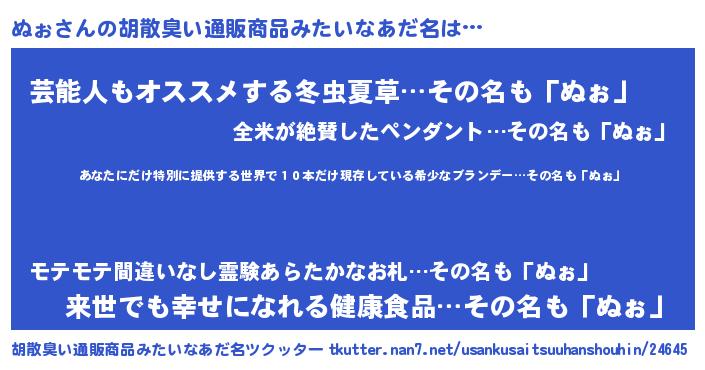| ヘコむあだ名 | 『ぬぉ(苦笑)』『ぬぉっちょ』 |