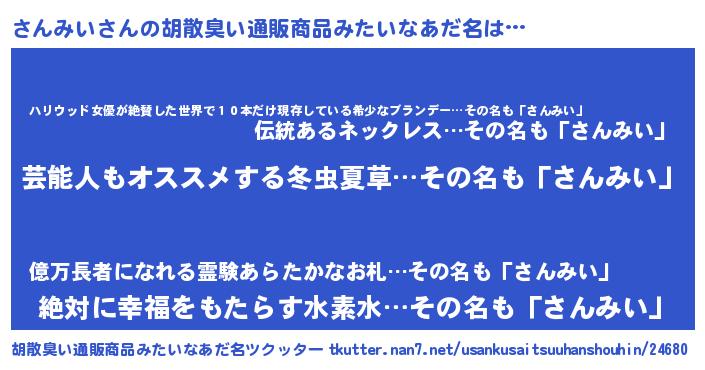 | ヘコむあだ名 | 『さんみい(苦笑)』『さんっちょ』 |